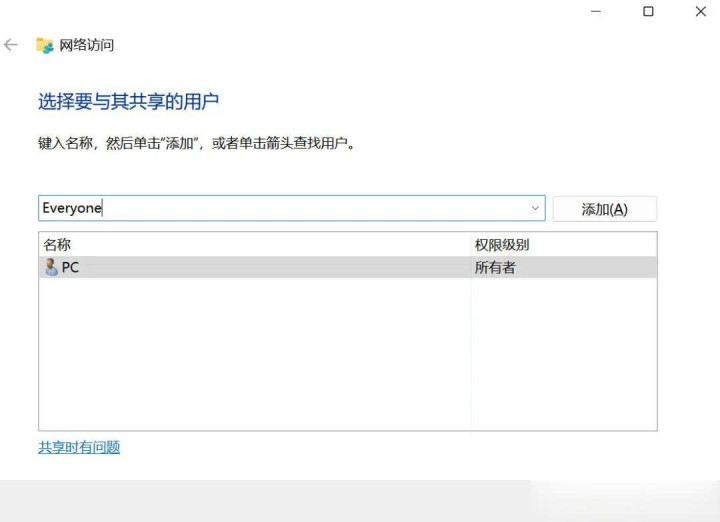 2.在弹出的窗口中可以选择与谁共享,当然也可以直接输入名字,然后点击添加就可以将对方加入到下方列表中。